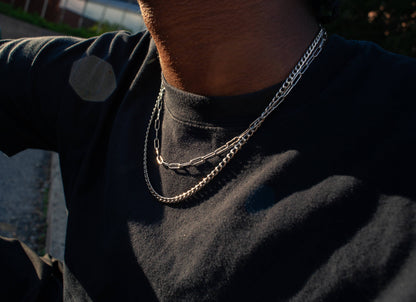 Silver Necklace Set : 4mm Paperclip Chain and 4mm Curb Chain
