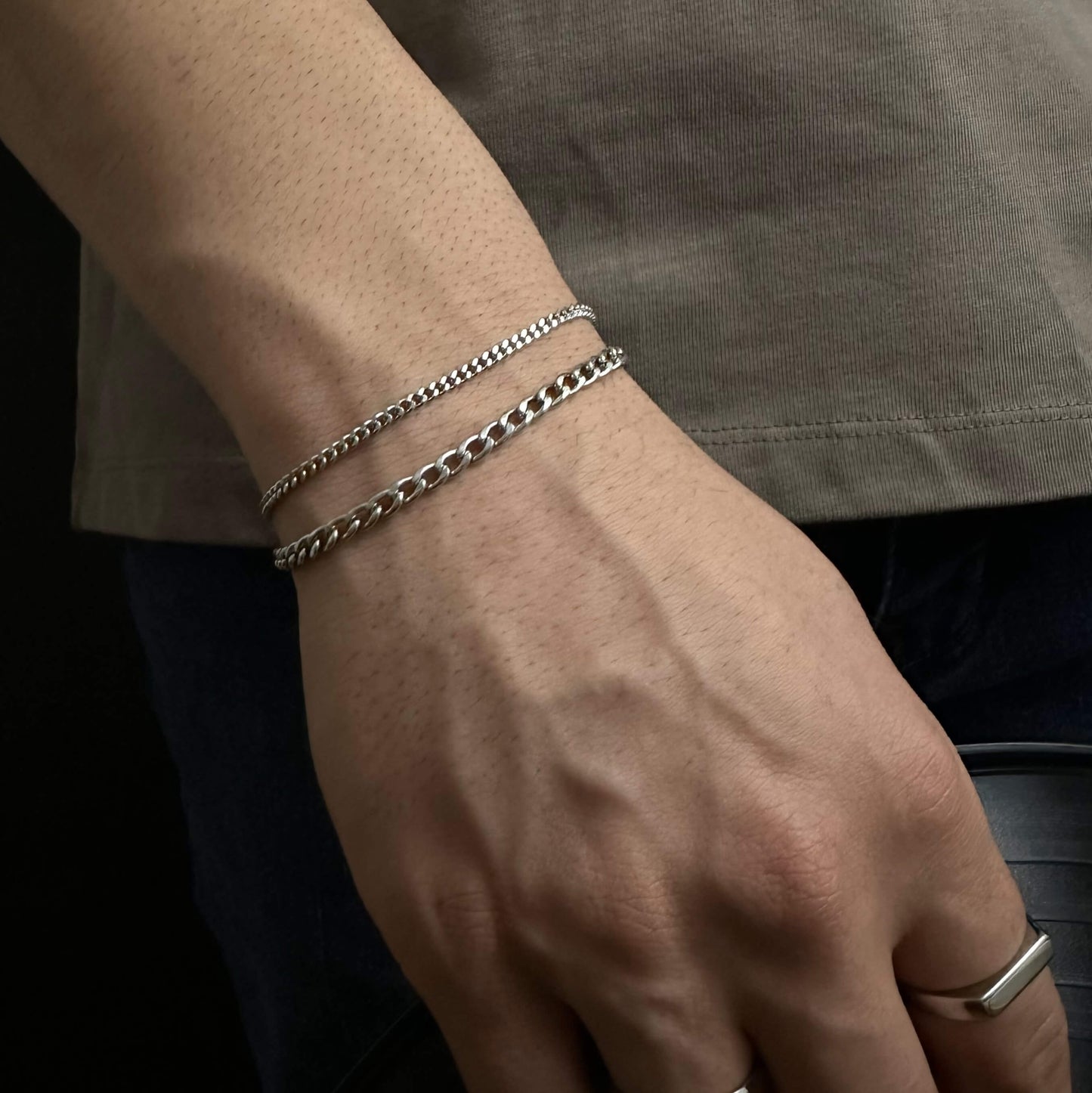 - Comprend deux bracelets : le premier est une chaîne gourmette de 3mm et le deuxième est une chaîne gourmette de 4mm