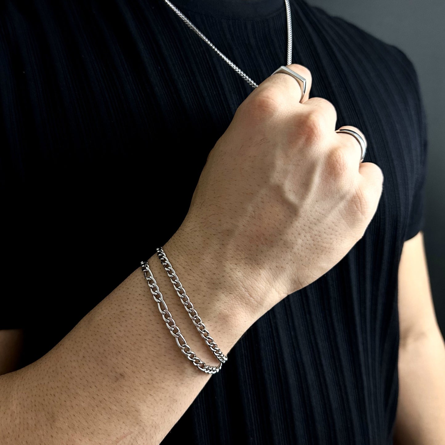 - Comprend deux bracelets : le premier est une chaîne gourmette de 4mm et le deuxième est une chaîne figaro de 4.5mm
