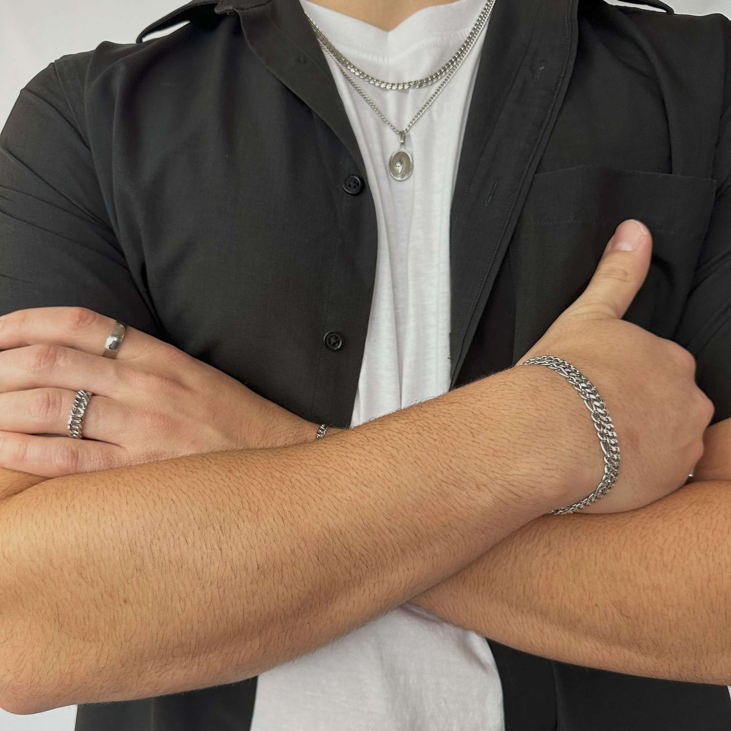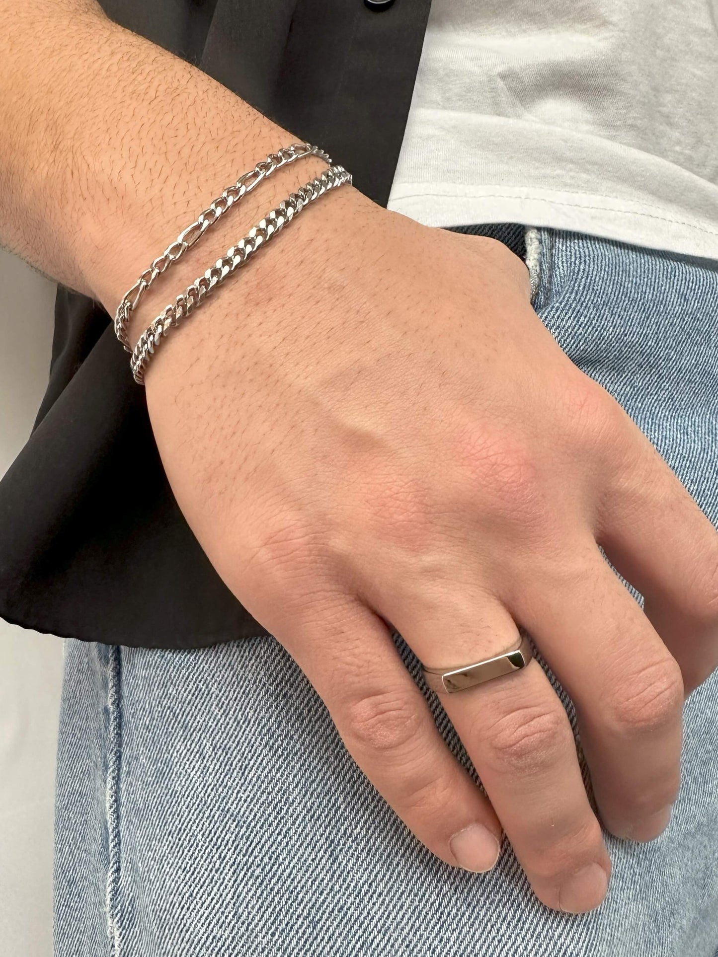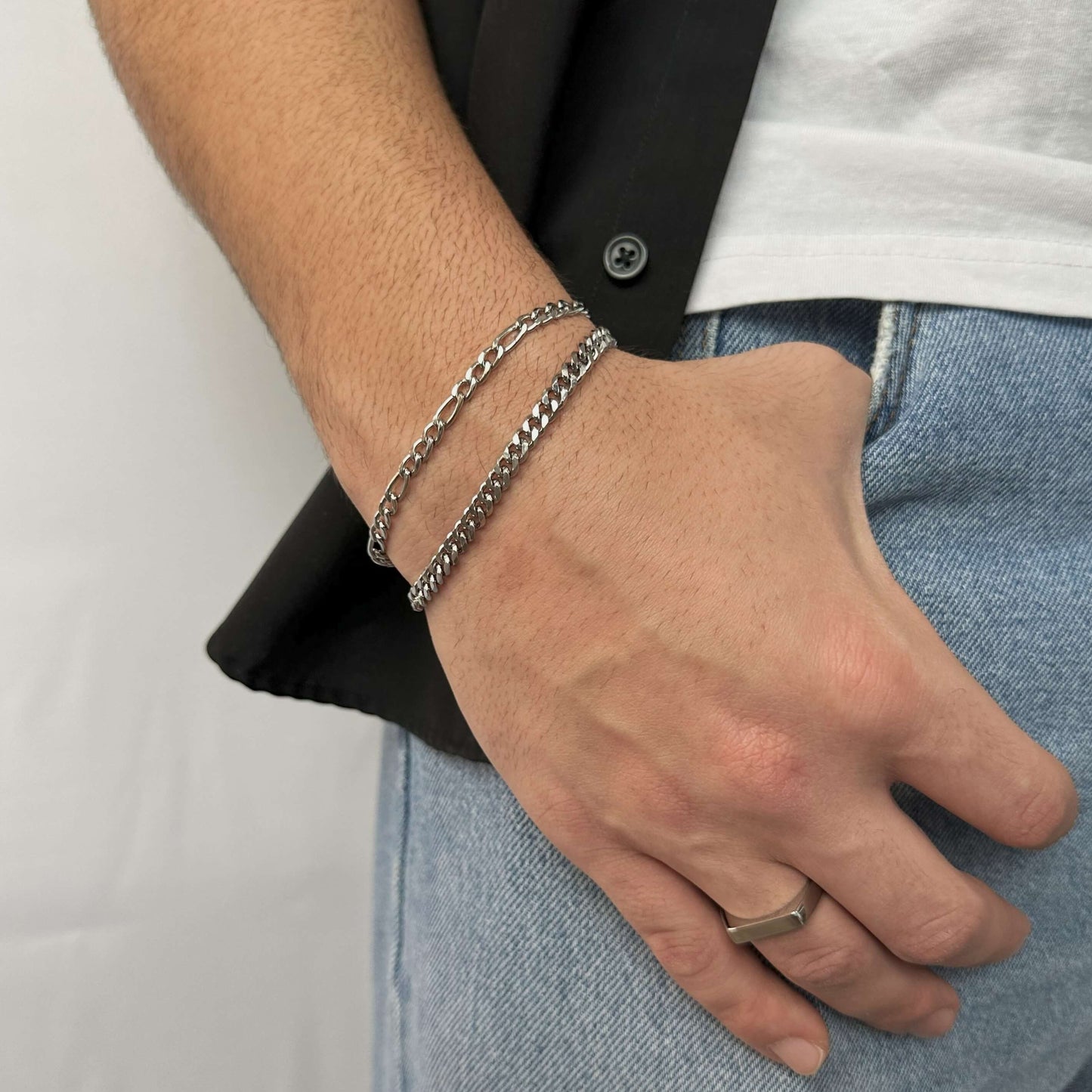 - Comprend deux bracelets : le premier est une chaîne gourmette de 5mm et le deuxième est une chaîne figaro de 4.5mm