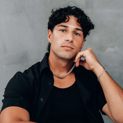 Our jewelry is made from stainless steel, a durable material that’s water-resistant and won’t tarnish or rust, so you can wear it comfortably and confidently every day.
